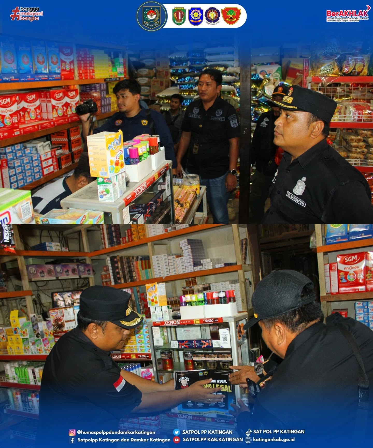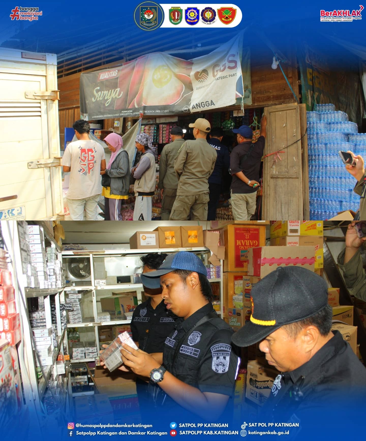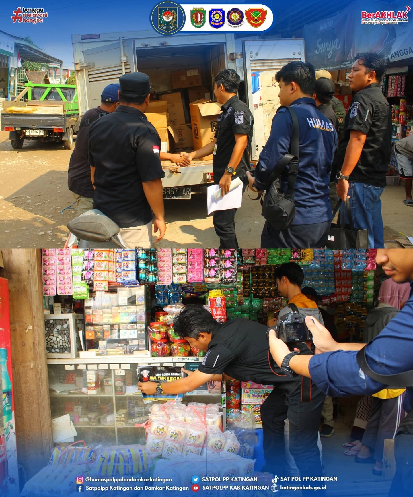 Satuan Polisi Pamong Praja dan Pemadam Kebakaran Kabupaten Katingan melalui Bidang Penegakan Perda dan Produk Hukum Lainnya melaksanakan Operasi dan Sosialisasi Pemberantasan Rokok IIlegal bersama Kantor Pengawasan dan Pelayanan Bea dan Cukai Tipe Madya Pabean C Sampit (KPPBC TMP C Sampit) yang dilaksanakan di Tumbang Samba, Kecamatan Katingan Tengah, Kabupaten Katingan pada Jumat (29/08/2025).